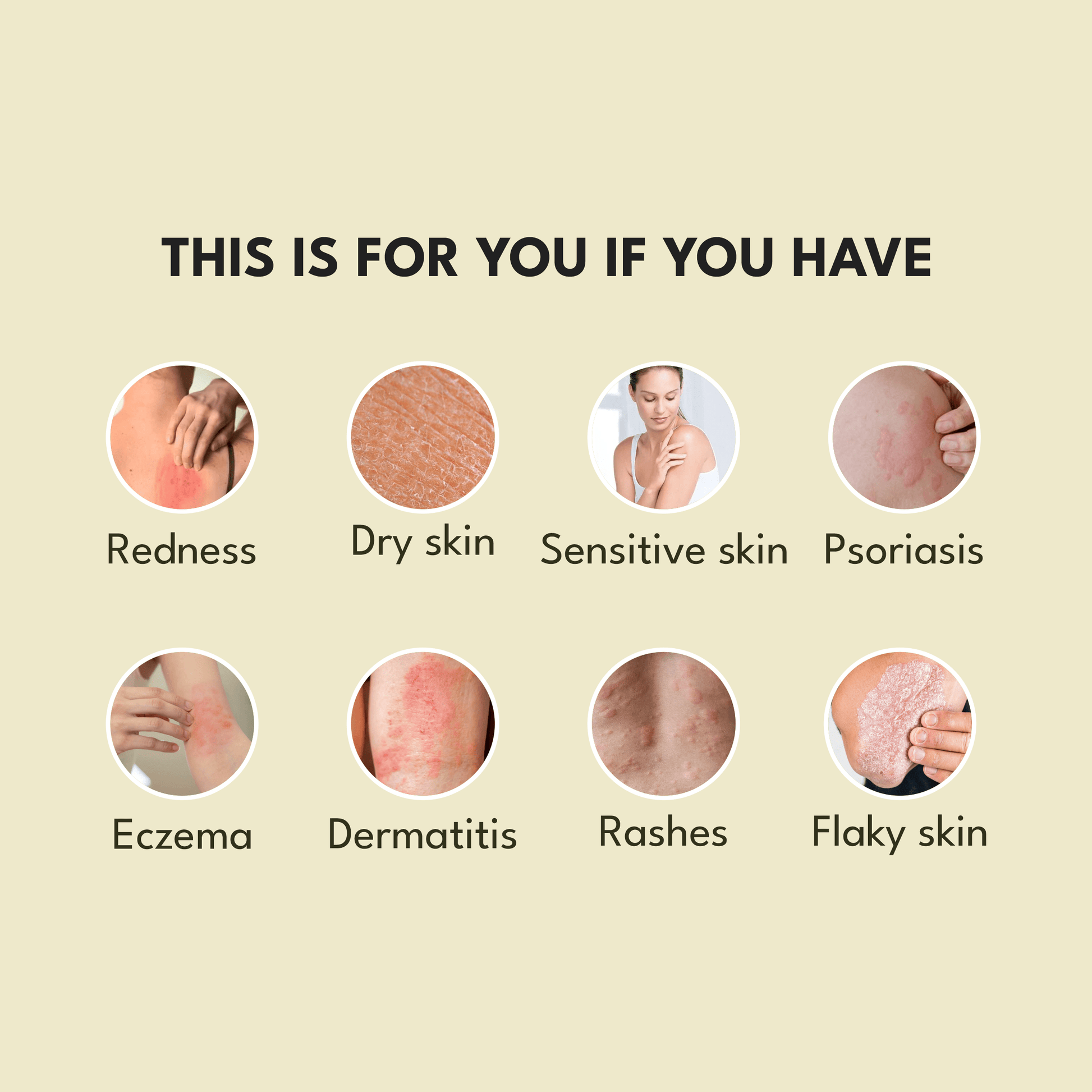 It is designed to soothe sensitive and irritated skin, which can help with eczema and psoriasis.